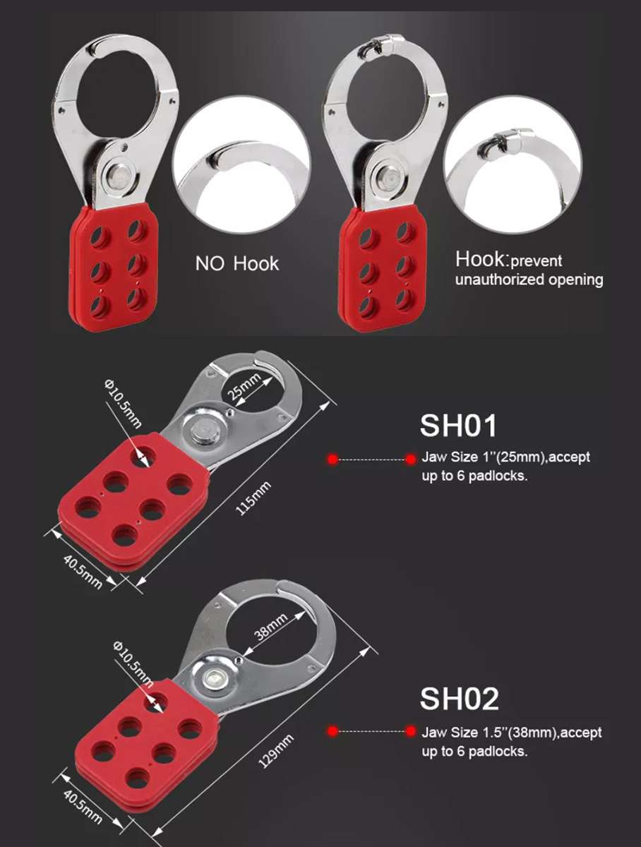 ห่วงล็อคก้ามปู (Hasp) ที่ออกแบบมาเพื่อเพิ่มความปลอดภัยในกรณีที่ต้องมีการซ่อมบำรุงโดยพนักงานหลายคน ช่วยให้สามารถคล้องแม่กุญแจได้สูงสุดถึง 6 ตัวในจุดเดียว